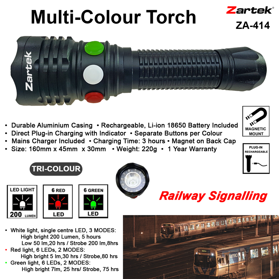 ZA-414 Rechargeable LED Multi-Colour Flashlight
