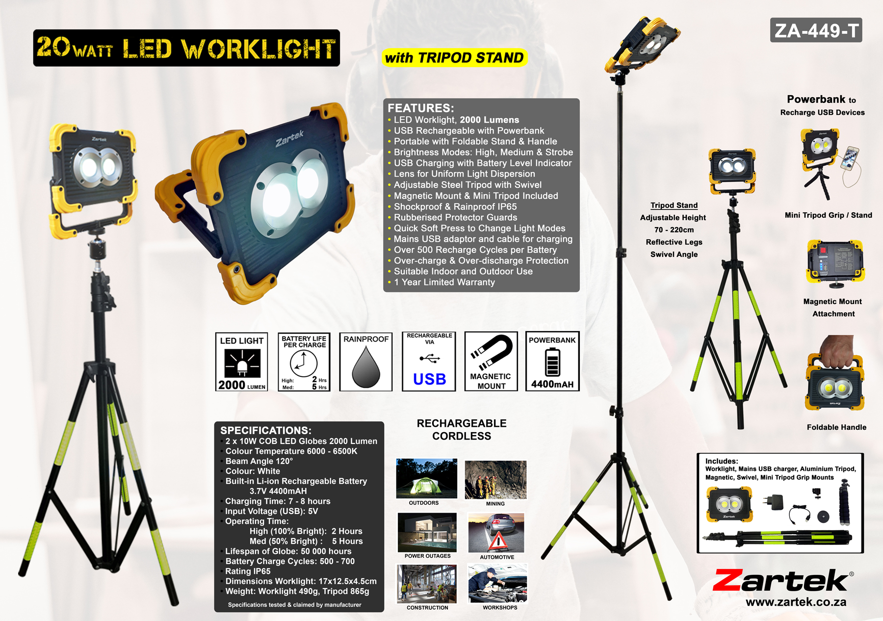 • Dimensions Worklight: 17×12.5×4.5cm • Weight: Worklight 490g, Tripod 865g