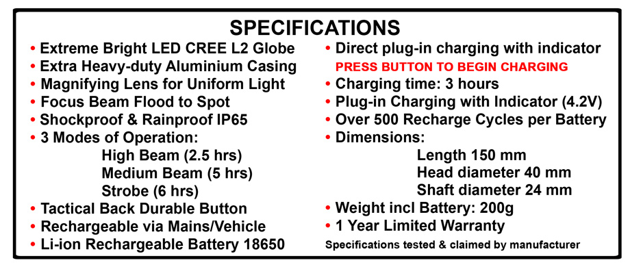 Mains and Vehicle adaptor (4,2V) with charge indicator