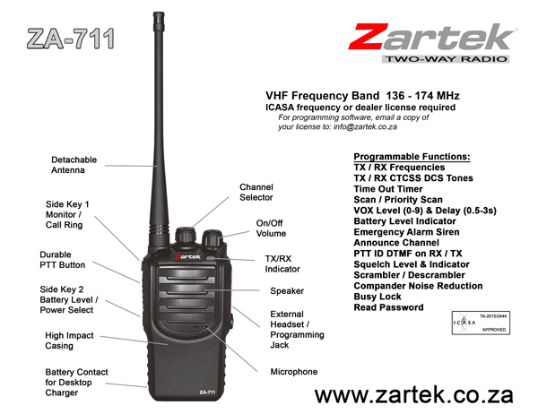 VHF Frequency Band 136 – 174 MHz: ICASA frequency or dealer license required