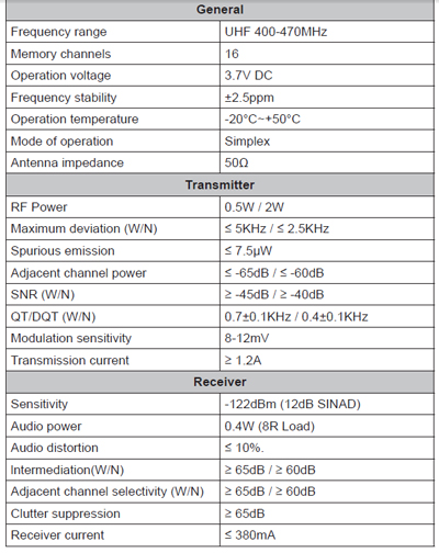 Zartek TX-8, ZA-748, ZA-758, ZA-725, ZA-705, ZA-708, COM8 & Pro8 Radio (446 MHz)
