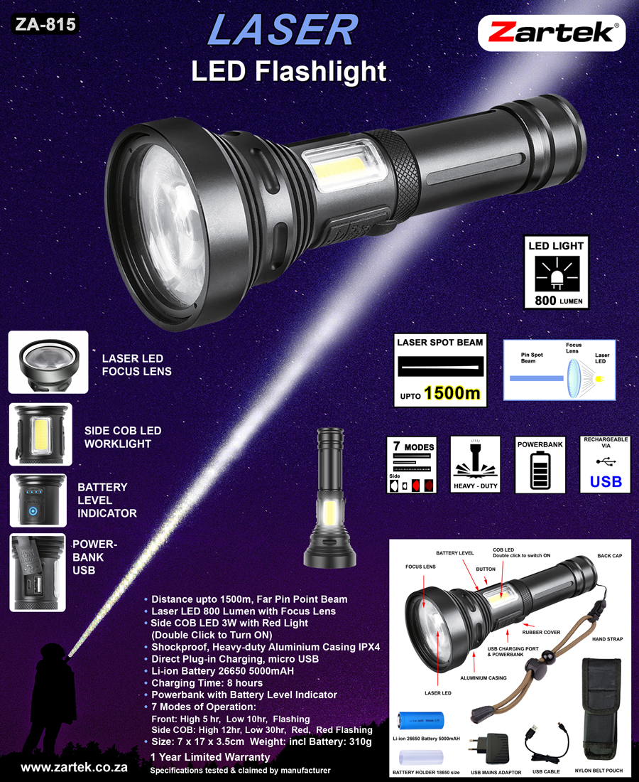 ZA-815 Laser LED Flashlight USB Rechargeable